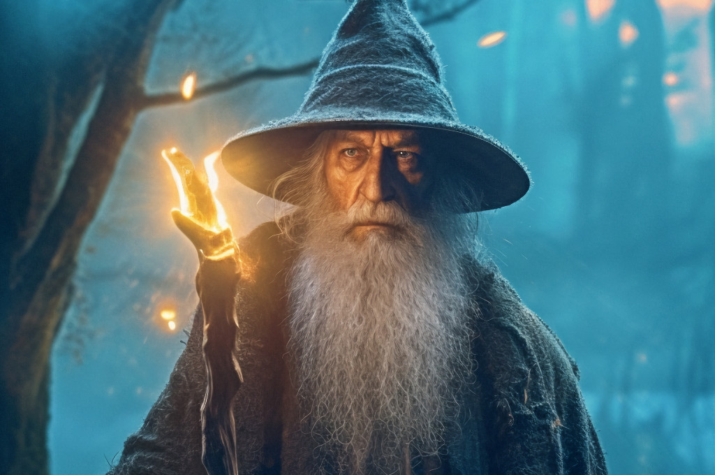 Предметы вокруг мага — это отсылки к четырем стихиям: