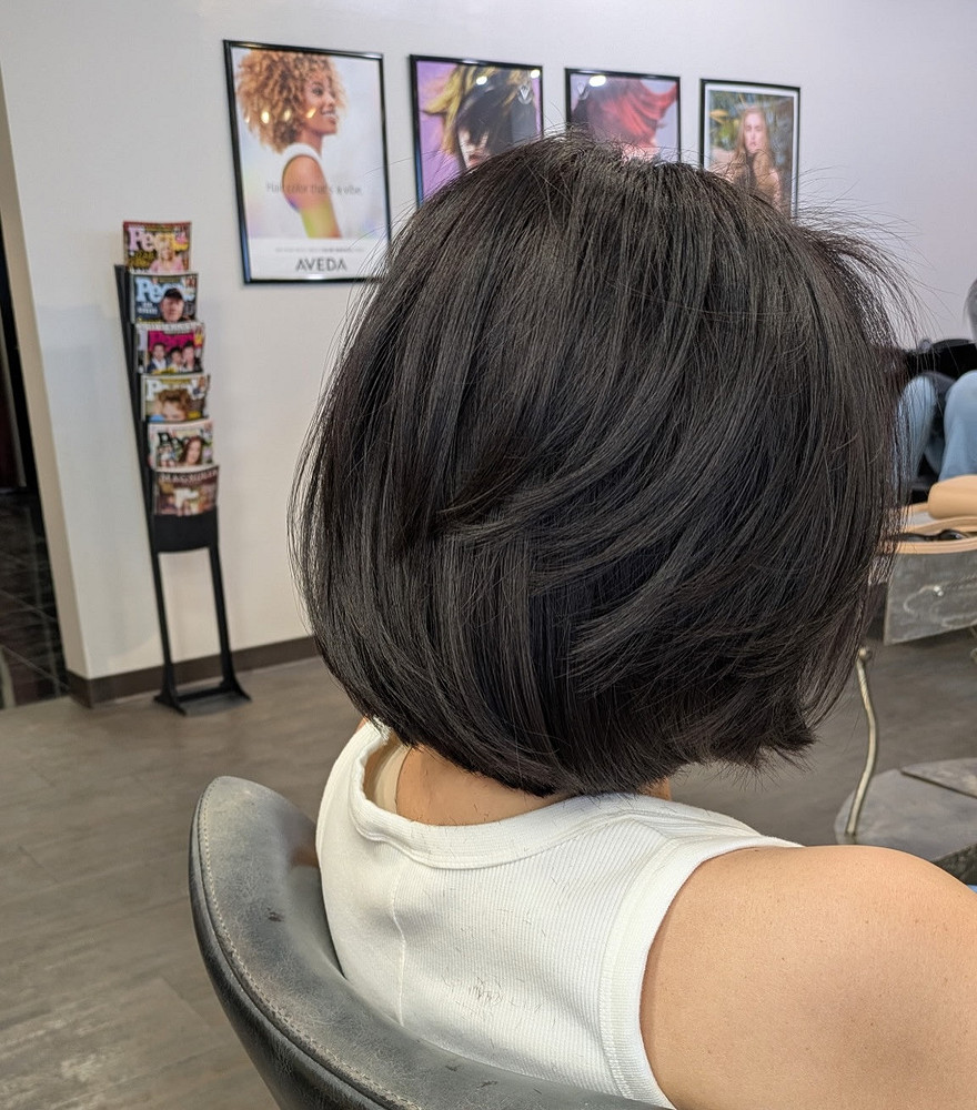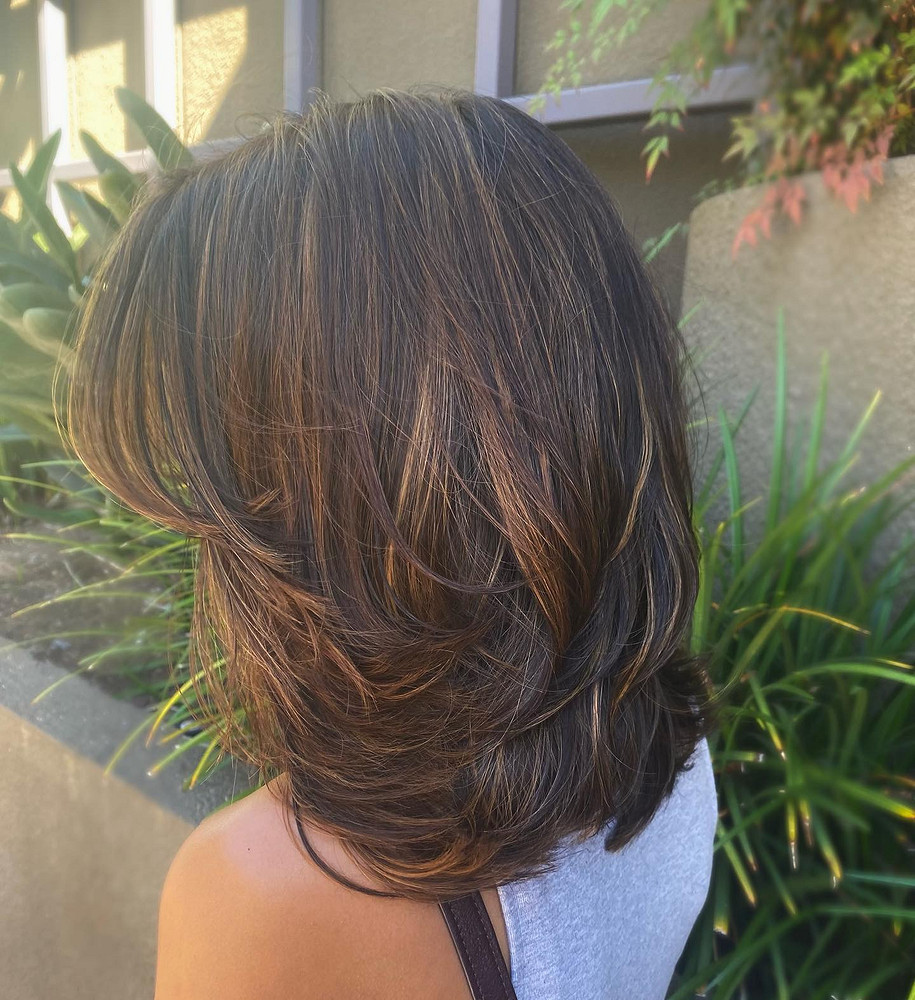 Главный секрет этой стрижки кроется в технике исполнения. Слои прячутся внутри, снаружи волосы выглядят ровно и аккуратно, но когда ты двигаешься… они живут. Объем у корней не нужно «делать» феном каждое утро: достаточно правильно высушить волосы, наклонив голову вниз.