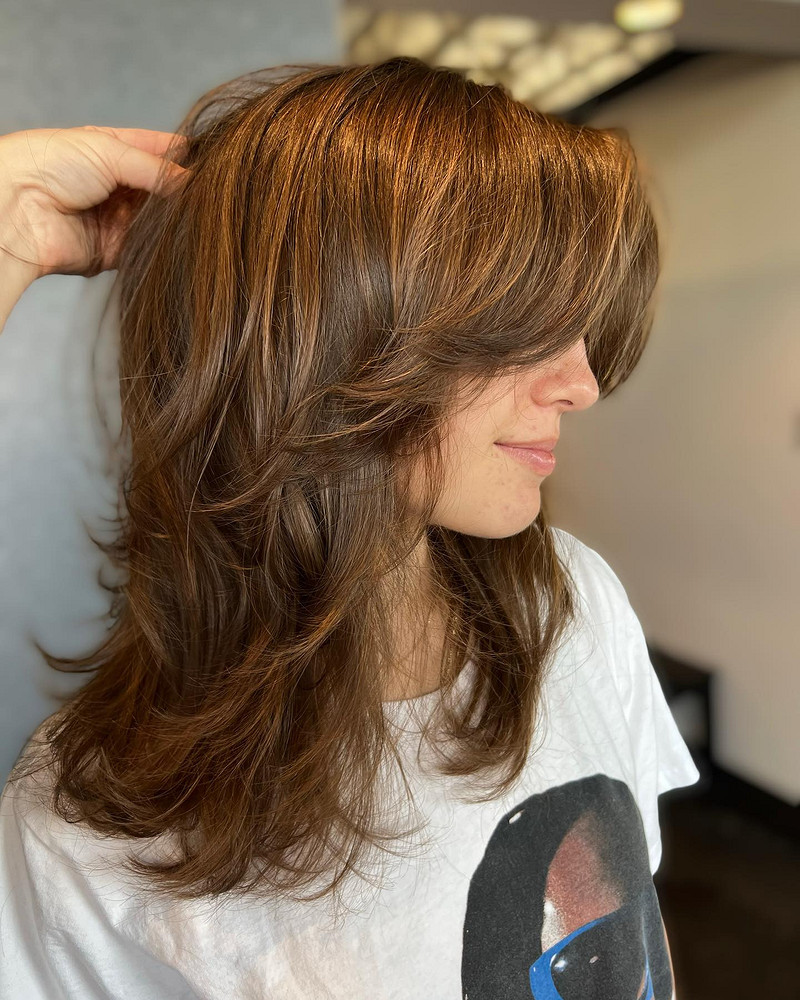 Шэг вернулся — и теперь он не тот угловатый бунтарь из семидесятых, а его повзрослевшая, слегка растрепанная версия. Современная интерпретация — это многослойная структура с рваными концами, которая буквально оживляет волосы. Каждый слой работает отдельно и вместе: пряди не слипаются в одну массу, а живут своей жизнью.