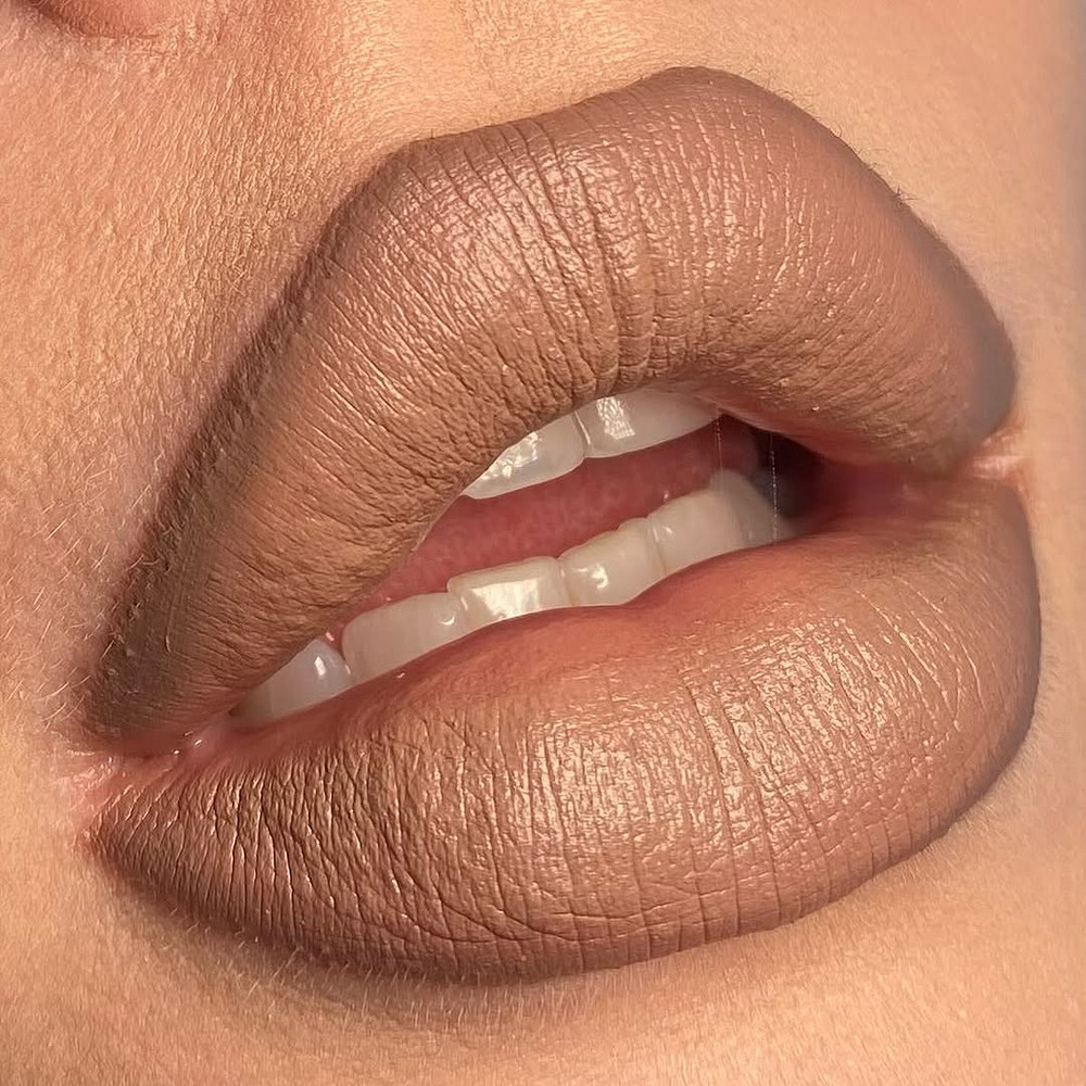 Бонус в том, что коричневые губы идеально вписываются в трендовый «макияж в стиле латте»: теплые оттенки, мягкие переходы, ощущение уюта. Так что сочетай его со смоки в коричневых тонах, бронзовым свечением на скулах и тушью теплого черного цвета.