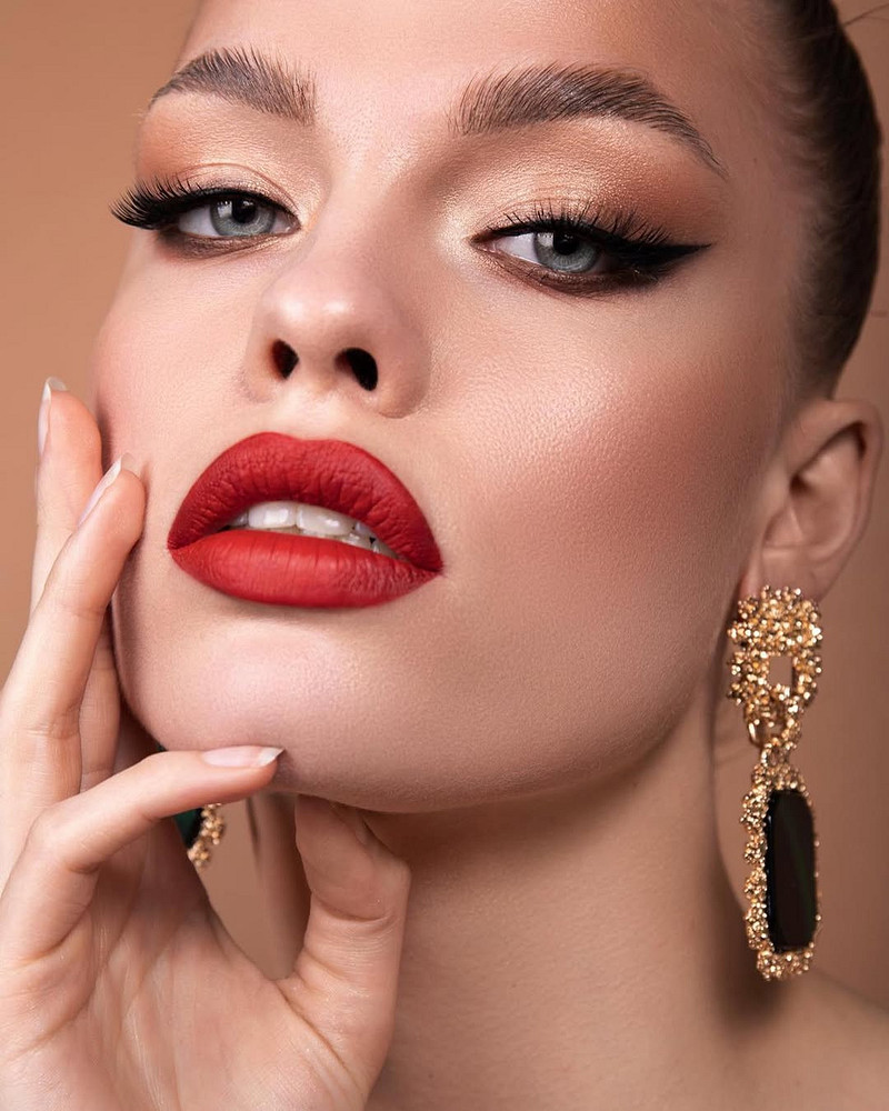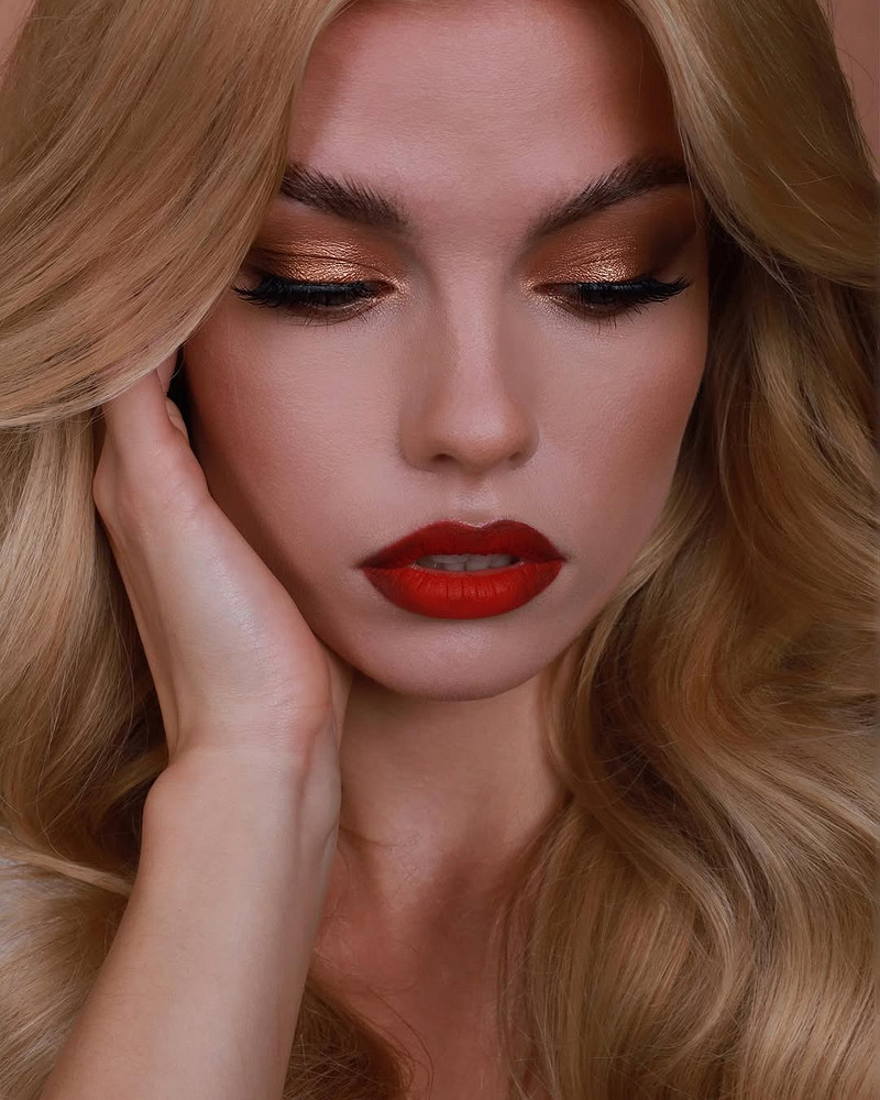 Также попробуй наносить помаду не в полную силу: можешь растушевать пальцем, создавая эффект зацелованных губ, или нанести плотным слоем только по центру губ, оставив края чуть размытыми. Это сделает образ более современным и менее театральным.