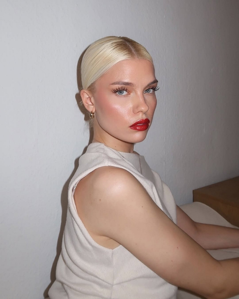 Совет: выбирай кремовые текстуры. Матовые будут смотреться слишком сухо и театрально, а вот сатиновые или полуматовые создадут нужный баланс. И наноси помаду пальцем, чтобы границы остались мягкими и размытыми. Именно так сейчас делают топовые мейкап-артисты.