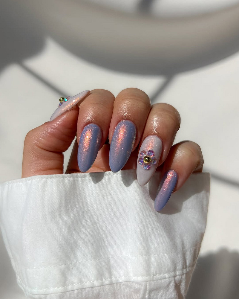 Ну а жемчужные переливы — более нежный вариант для тех, кто любит элегантность. Они создают эффект мокрого шелка или перламутровой раковины, что тоже выглядит очень и очень эффектно.