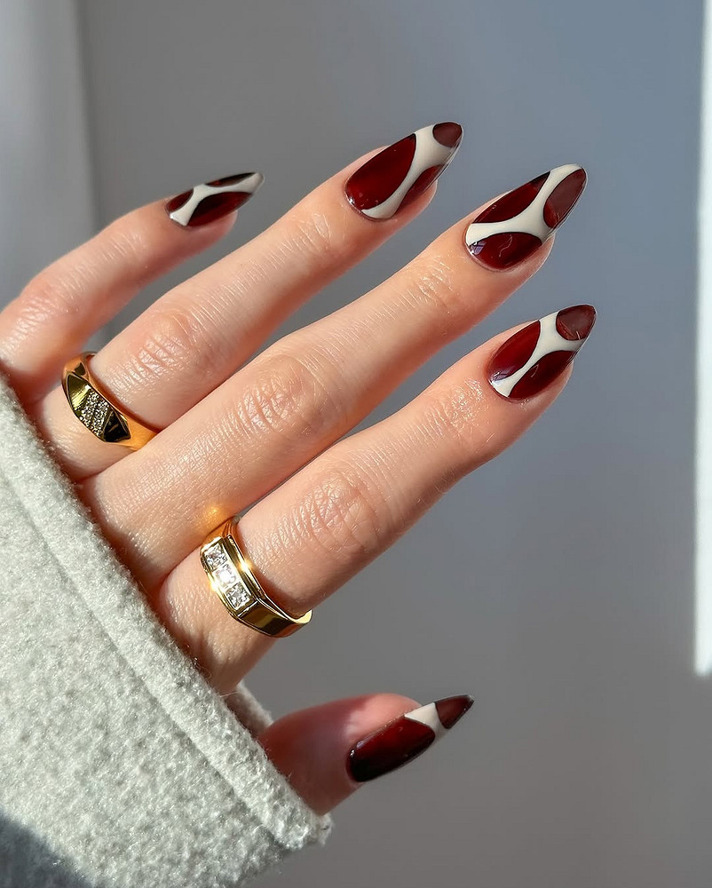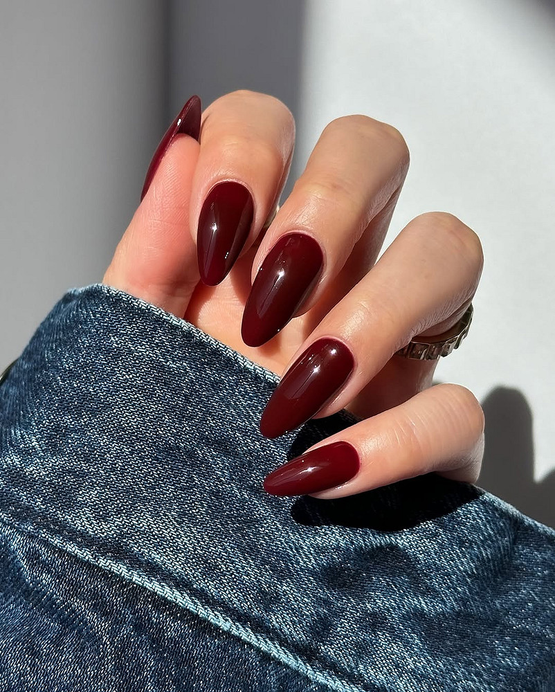 Темный шоколад — для тех, кто не боится глубины и драмы. Этот цвет выглядит дорого, особенно в глянцевом финише, и отлично сочетается с золотом и красным. Можешь попробовать коричневый градиент: от светлого капучино к насыщенному горькому шоколаду. Или сделай матовое коричневое покрытие с одним глянцевым акцентным ногтем.