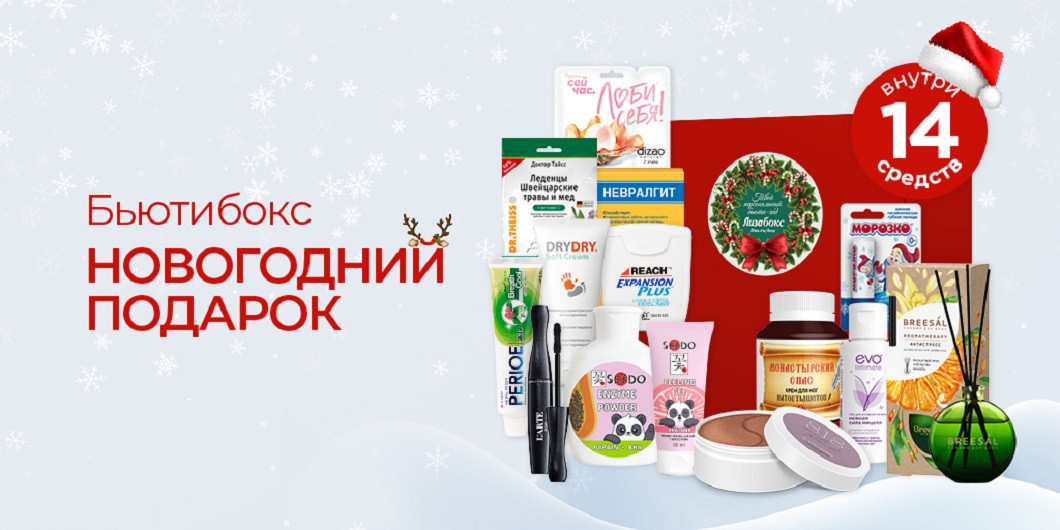 Приближается самый волшебный, долгожданный и любимый всеми праздник — Новый год! А с ним, конечно, и приятные хлопоты: подготовка и выбор подарков для самых дорогих и близких. "Лизабокс "Новогодний Подарок" — идеальное решение, чтобы побаловать себя или сделать незабываемый подарок близким. Внутри тебя ждут 13 самых актуальных средств для комплексного ухода за лицом, телом, для поддержки здоровья и даже для создания уюта в доме.