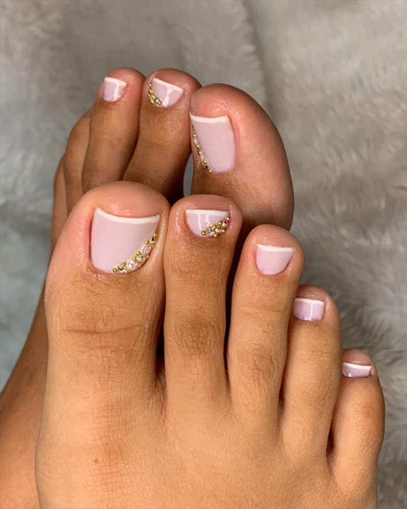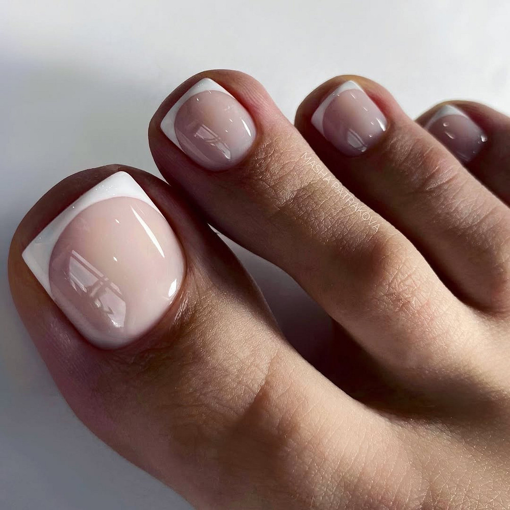 Такой педикюр максимально щадящий и подходит тем, кто ведет активный образ жизни или стремится к универсальному, неброскому образу. Если ты предпочитаешь лаконичность, этот вариант уменьшит частоту коррекций и снизит нагрузку на ногтевую пластину.