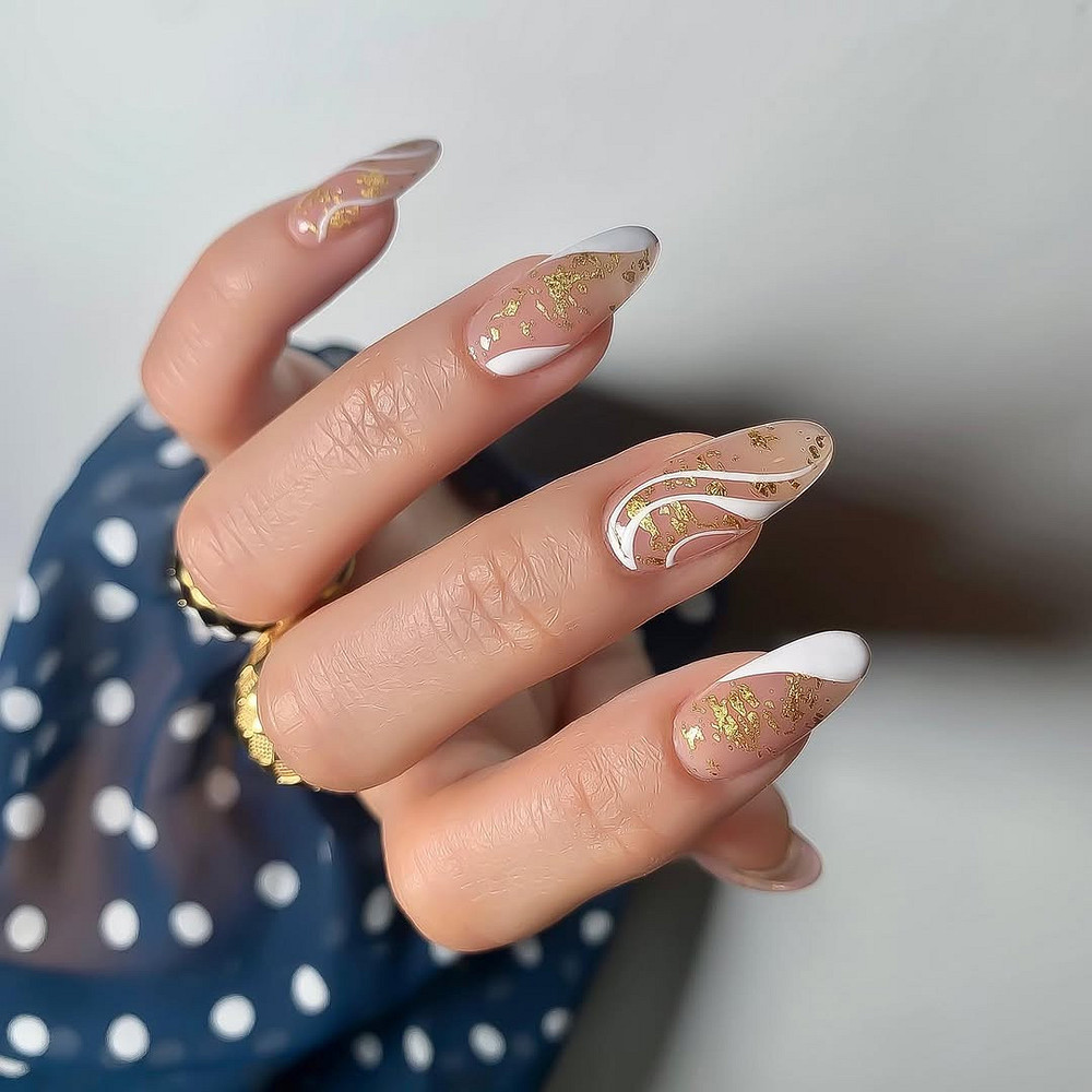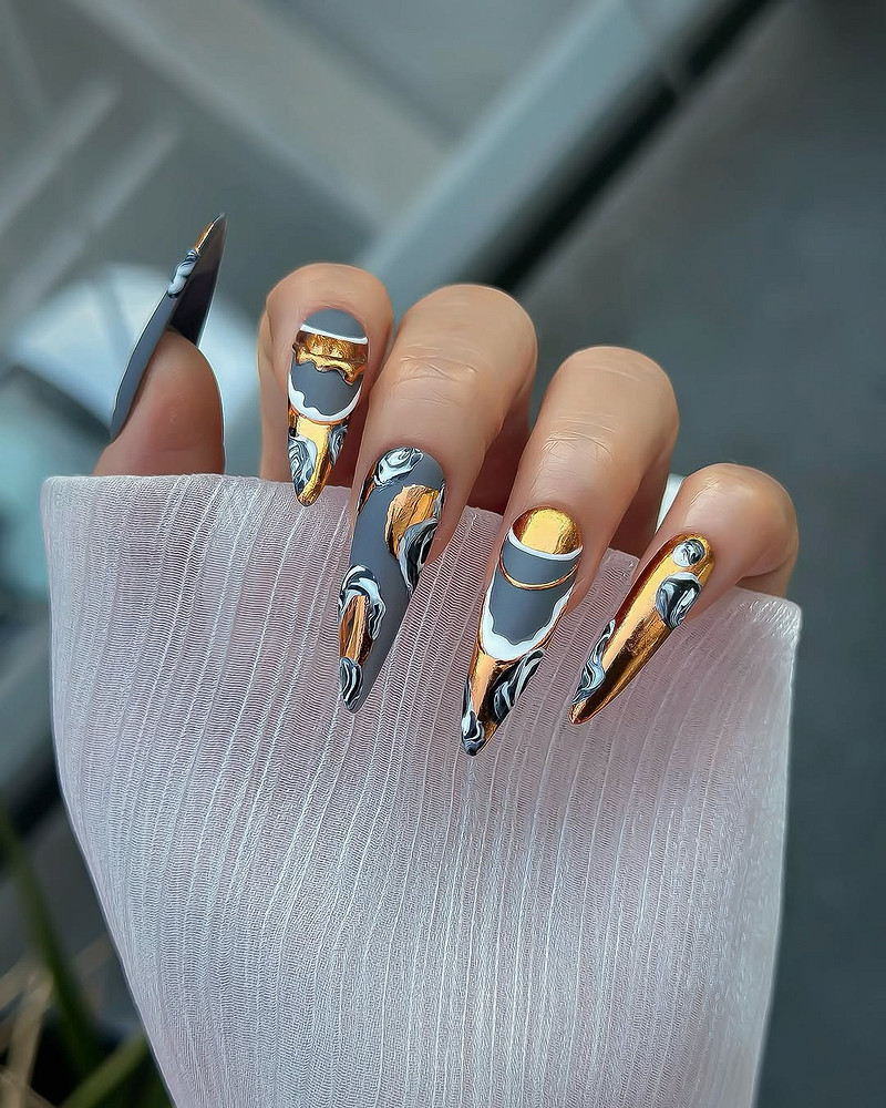 И вот он — король денежных маникюров и буквально символ богатства во всех культурах. Но важно: в 2026 году золото на ногтях работает только как акцент, а не как самостоятельный оттенок.