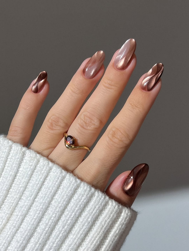 Сочетай его с золотом или бронзовыми акцентами, чтобы получился образ роскошной, уверенной женщины. Кстати, шоколадный универсален: он одинаково круто смотрится и на коротких ногтях, и на длинных. Беспроигрышный вариант для тех, кто не хочет рисковать, но хочет выглядеть статусно.