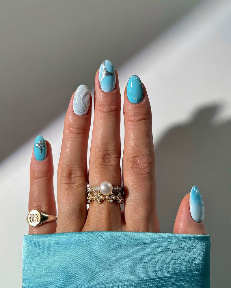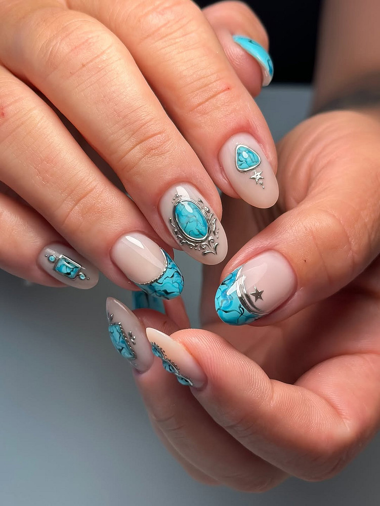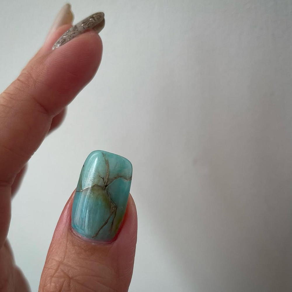 Говоря про ногти на январь 2026 и денежный маникюр, хочется отметить, что это еще и история о креативности. Работаешь в творческой сфере? Хочешь выделиться на фоне корпоративных серых костюмов? Бирюза — твой выбор.