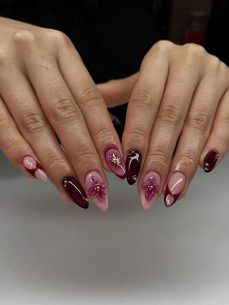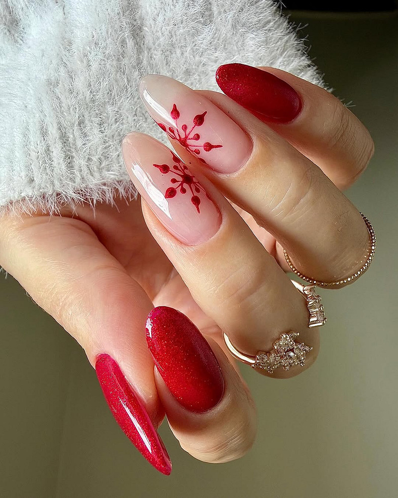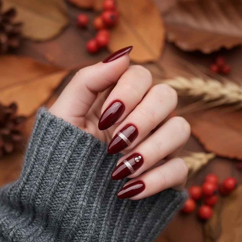 С такими вкусными оттенками отлично смотрится глянцевое покрытие, которое даст насыщенность и сияние. А если твой стиль предполагает неординарность, добавь мелкие стразы или блестки на несколько ногтей. Это добавит праздничности, но не превратит маникюр в новогоднюю елку.
