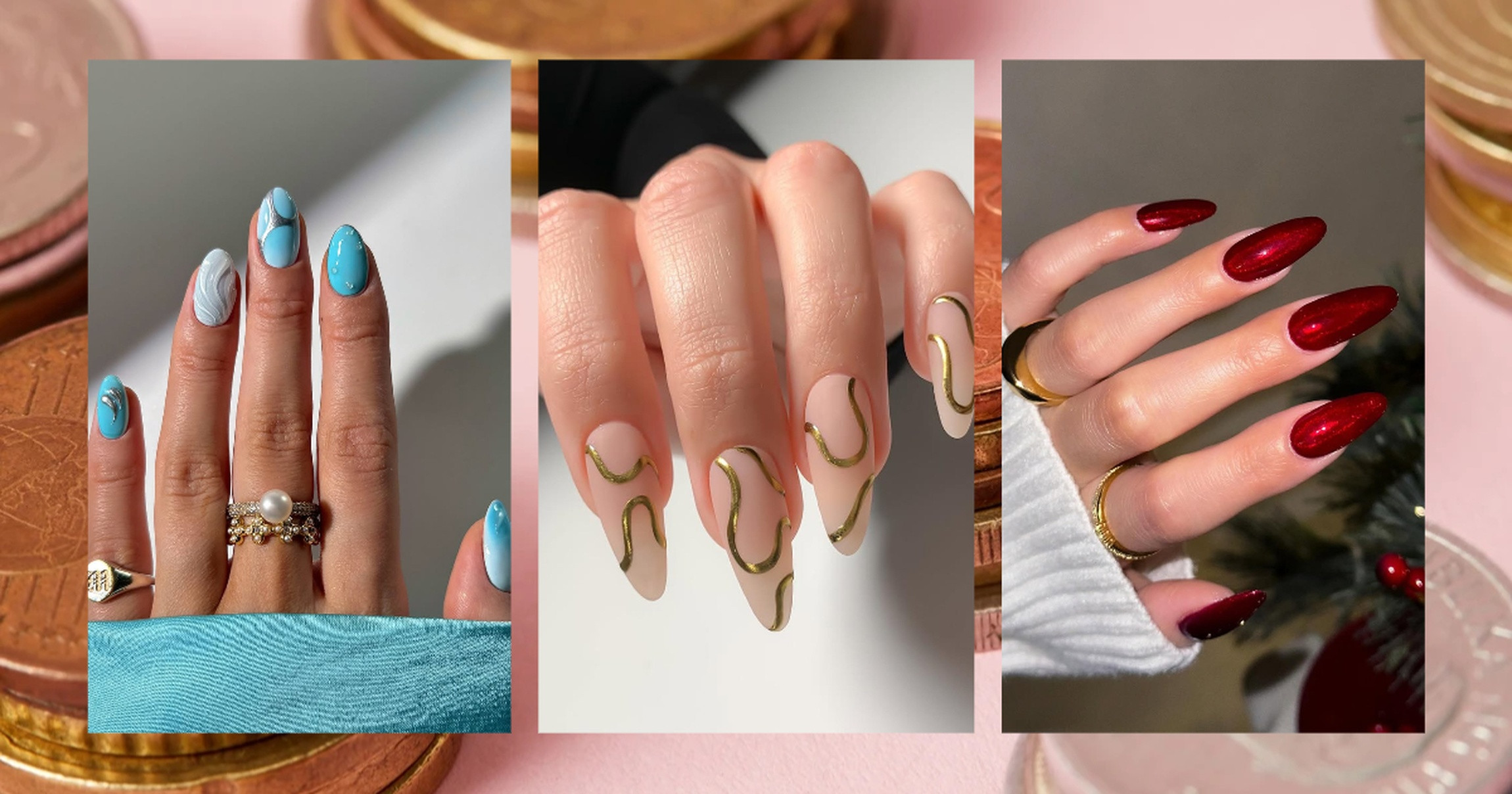 Золотые акценты усиливают любой базовый оттенок. Они как вишенка на торте: маникюр и без них хорош, но с ними становится идеальным. Плюс золото отражает свет, а значит, твои руки всегда будут в центре внимания.