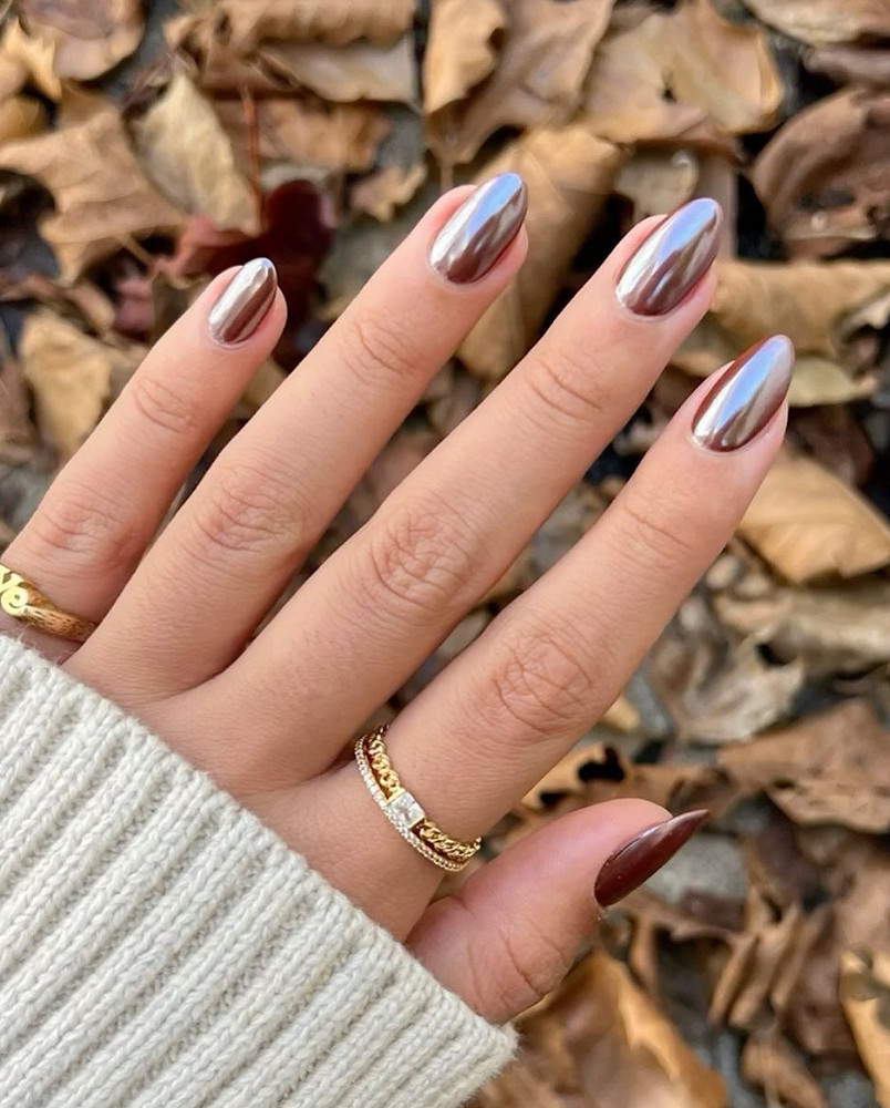 Сложные природные оттенки — главный цветовой тренд 2026-го. Шоколадные, оливковые, дымчатые нюды, терракота, пыльная роза. Словом, все, что напоминает о земле, глине, осенних листьях. Это не яркие цвета, но они создают ощущение глубины и качества. Когда видишь такой маникюр, сразу понятно: девушка не экономила на мастере.