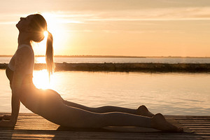 Если есть напряжение в задней поверхности ног, можно: поставить стопы на небольшое возвышение или упереться пятками в стену. Крестец направляй вверх, вытягивая всю заднюю линию тела, а грудной отдел мягко раскрывай.