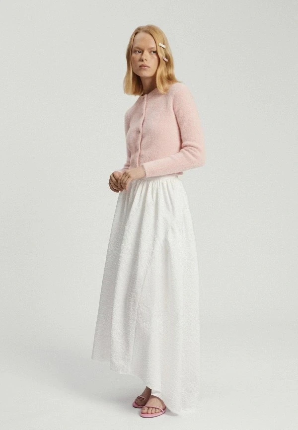 Белая юбка макси — как чистый лист для твоих модных экспериментов. Такие юбки могут выглядеть очень по-разному из-за материалов: от моделей из легчайшего хлопка и льна до более структурированных смесей с эластаном и, конечно, денима.