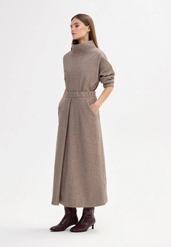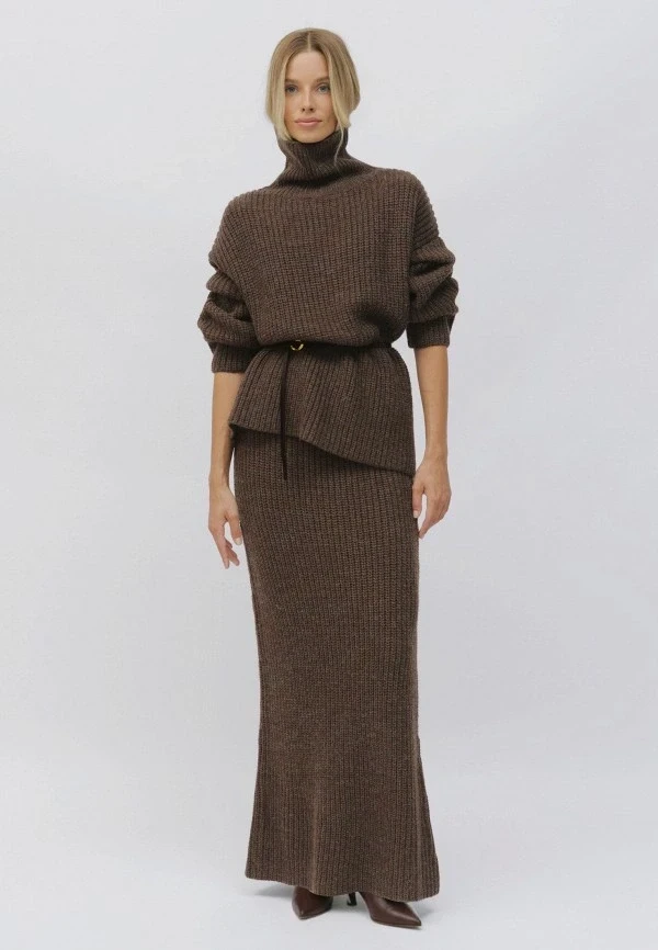 Все дело в тканях и крое. Макси-юбка из плотной шерсти, кашемира или смесового материала отлично защищает от холода, при этом остается легкой и пластичной. Она двигается вместе с тобой, создавая мягкий, текучий силуэт, и не утяжеляет образ. Такая вещь — находка для тех, кто не хочет выбирать между теплом и элегантностью.