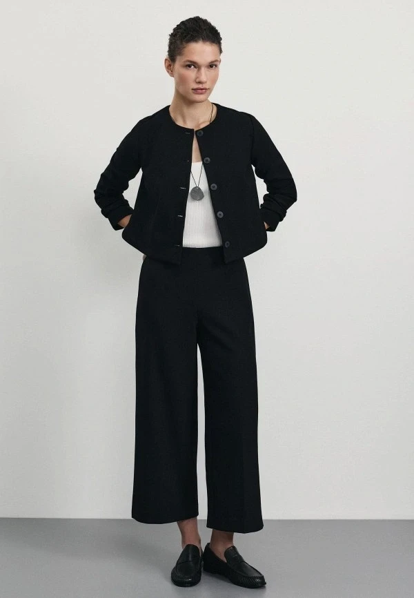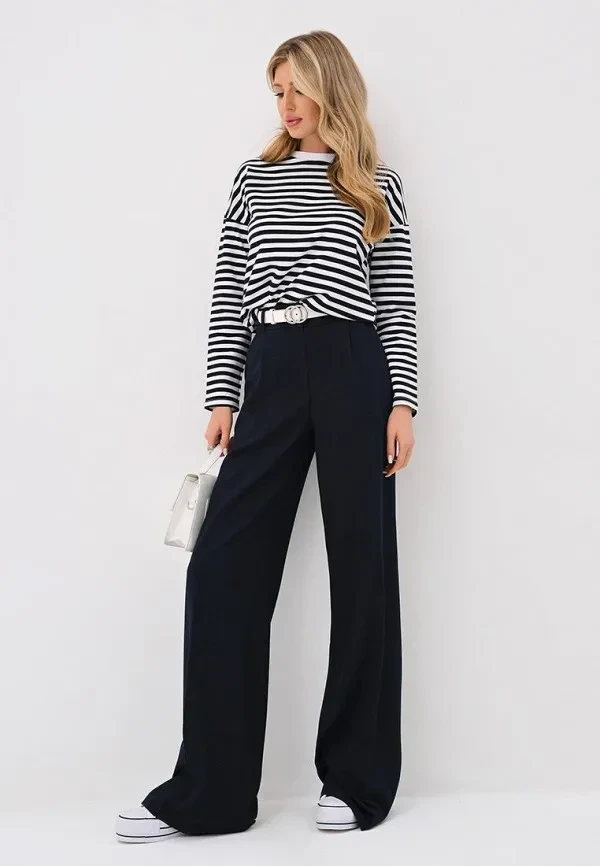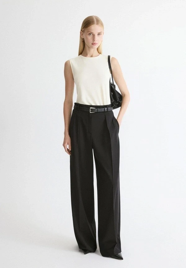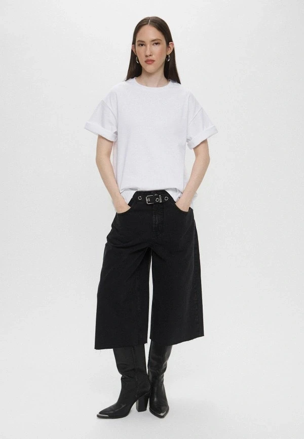 Для широких брюк или кюлотов действует другое правило: выбирай облегающую или слегка приталенную футболку. Контраст объемов — то, что делает образ интересным. Если наденешь оверсайз верх с оверсайз низом, рискуешь выглядеть как персонаж в костюме для маскота. Заправка здесь обязательна: она структурирует лук и не дает тебе «потеряться» в ткани.