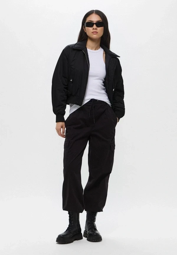 Для карго или утилитарных штанов с карманами используй полузаправку или боковую заправку — это подчеркнет эстетику образа, но не сделает его слишком военизированным. Можно добавить бандану или объемные аксессуары для завершенности.