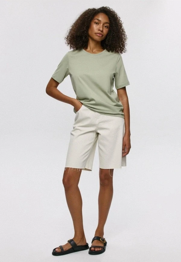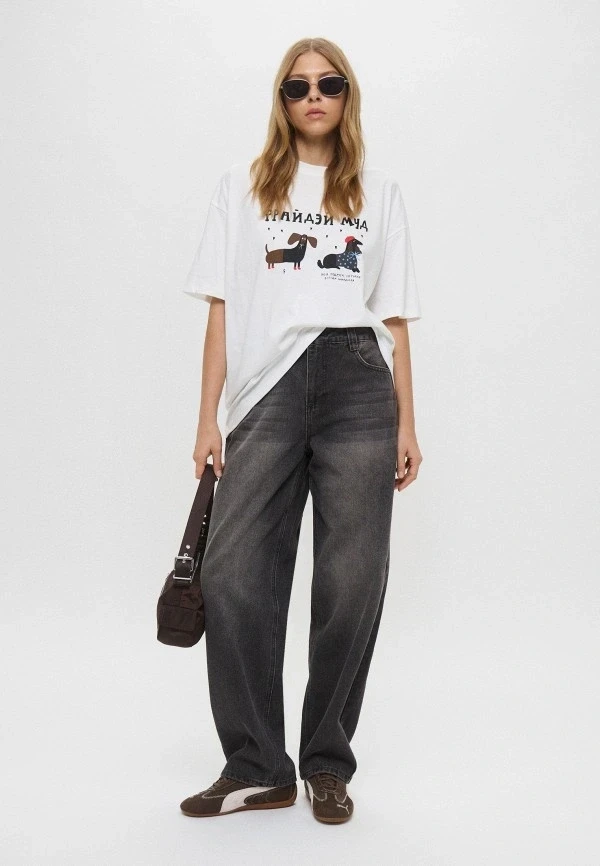 Еще один тренд, который не сдает позиций, — французская заправка. Просто возьми один боковой край футболки, слегка подверни и заправь только его. Асимметрия добавляет креатив и разбивает монотонность прямого силуэта. Идеально для casual-образов и луков выходного дня.