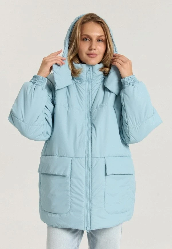 Если розовый зефир не твоя история, встречай противоположный тренд — пуховики оттенков льда и снега. Какие пуховики в моде зимой 2026 года? Именно такие: нежно-голубые, мятные, серебристо-зеленые, перламутровые. Те, что выглядят так, будто сделаны из застывшей воды. Эти оттенки создают ощущение свежести и чистоты, а еще они невероятно фотогеничны — в таком пуховике ты будешь выглядеть на фото как снежная королева, а не как замерзший пингвин.