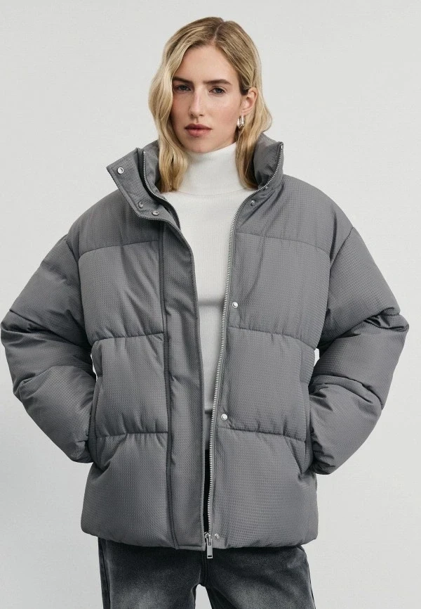 Серый — новый черный, только лучше. Графитовые оттенки в зимних пуховиках 2026 выглядят как компромисс между практичностью и стилем. Это не унылый мышиный цвет, а глубокий, насыщенный тон с холодным подтоном, который выглядит дорого и благородно. А если добавить к нему пояс — получается идеальная комбинация функциональности и женственности.