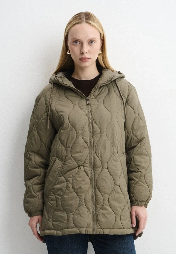 В новых коллекциях стеганые пуховики играют с объемом и структурой. Некоторые бренды делают стежку такой выпуклой, что куртка напоминает 3D-объект, другие, наоборот, создают плоскую геометрию, визуально стройнящую фигуру. Главное отличие от старых моделей — качество исполнения: идеально ровные швы, ткани с легким блеском или, наоборот, глубокой матовостью, продуманные пропорции.