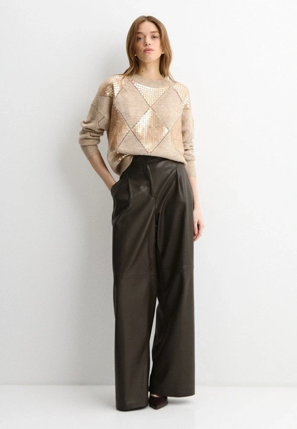 Узор в 2026-м — не что-то второстепенное, а полноценный тренд. Причем речь идет о четкой геометрии: ромбы в стиле preppy, контрастные полосы, графические принты. Это те самые стильные свитеры на осень-зиму 2026, которым не нужны дополнительные аксессуары. Они сами по себе уже акцент.