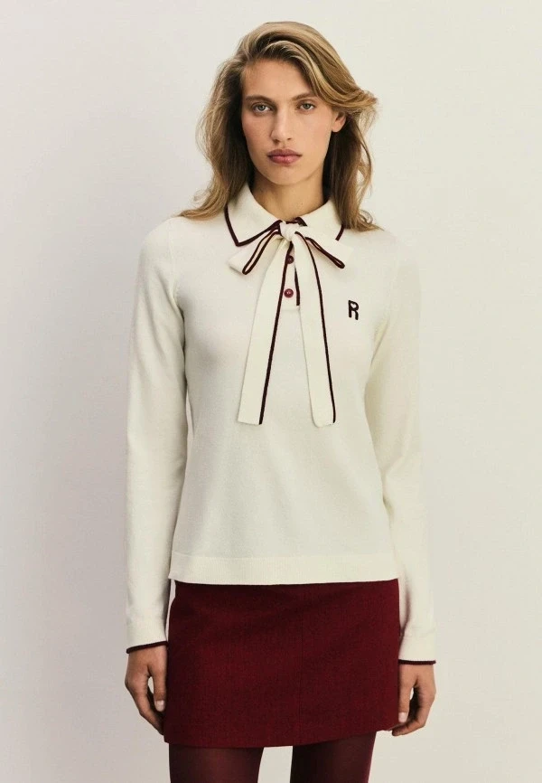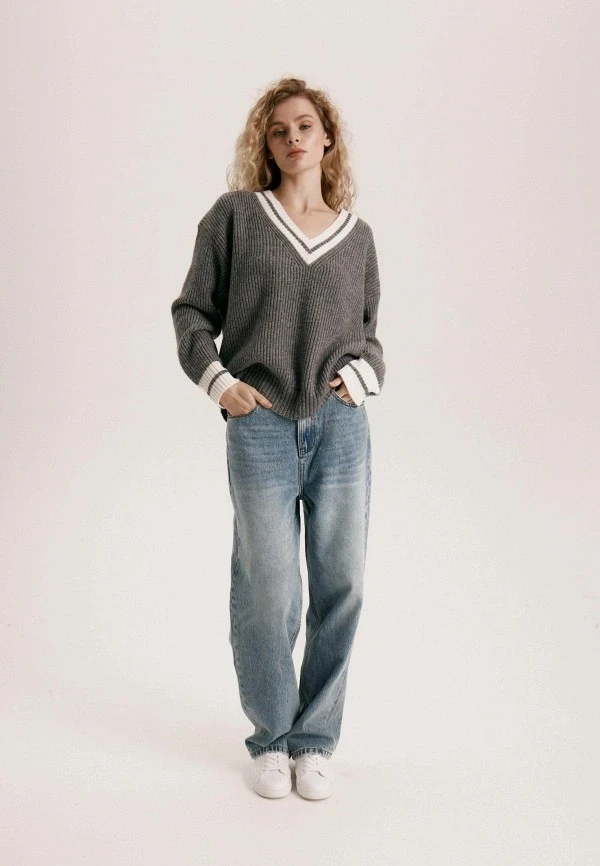 Носить такой свитер можно как самостоятельную вещь, и тогда воротничок становится главным акцентом образа. А можно надеть под него рубашку и выпустить ее воротник наружу. Получится лук в стиле преппи, который не выходит из моды уже несколько сезонов подряд. Особенно стильно это смотрится с джинсами и лоферами.
