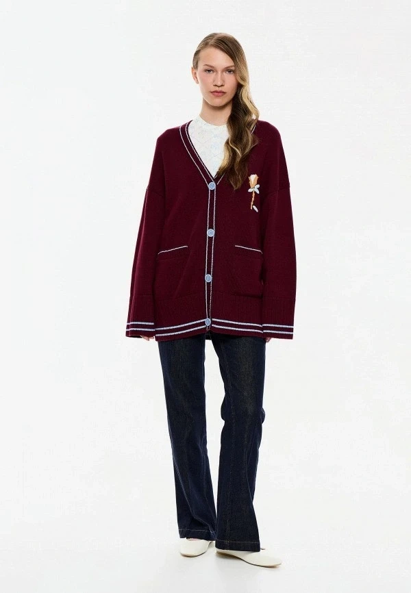 Вышивка может быть расположена по всей длине кардигана или только в определенных зонах — на плечах, по краям, на карманах. Это добавляет handmade-шарм и делает вещь уникальной. Принты на длинных кардиганах чаще всего этнические или флористические, создающие расслабленный, чуть богемный аутфит.