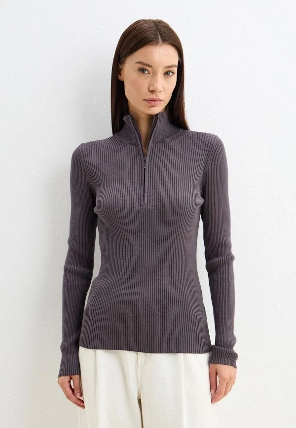 Этот вариант хорош тем, что он облегает фигуру, но при этом не выглядит вульгарно или слишком откровенно. Мелкая вертикальная резинка визуально вытягивает силуэт, а высокое горло добавляет элегантности. Такой свитер можно носить заправленным в брюки или юбку, а можно оставить навыпуск, оба варианта работают.