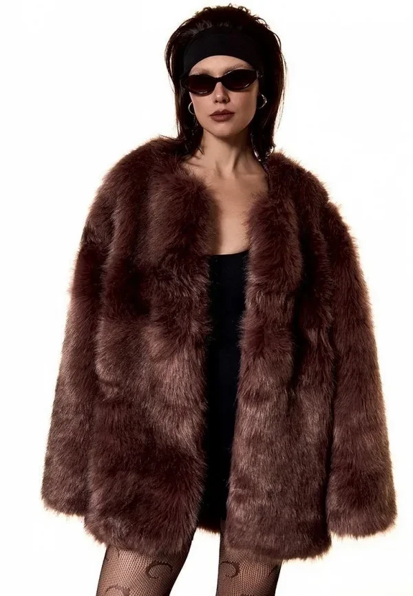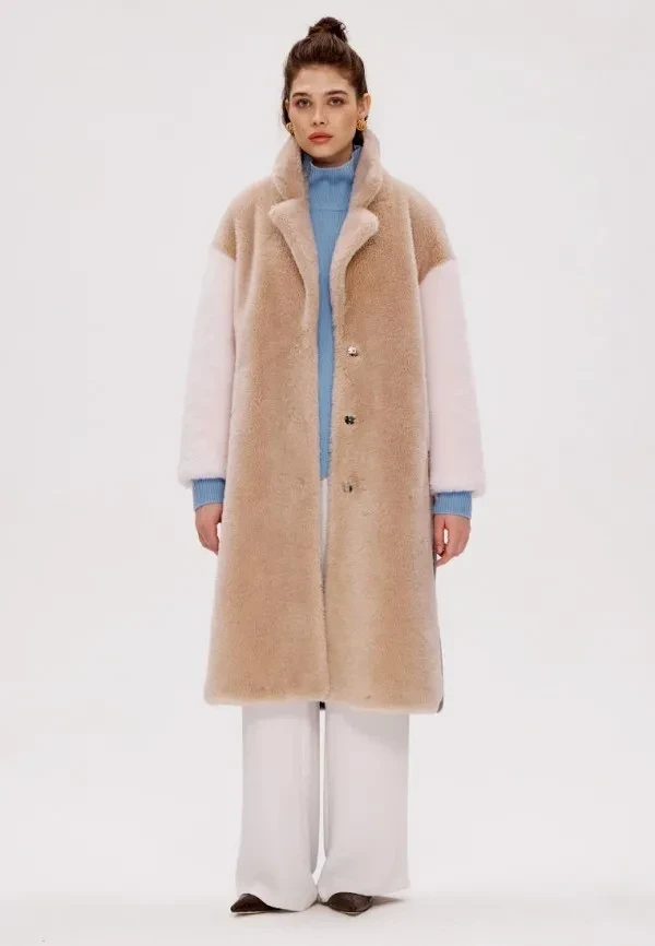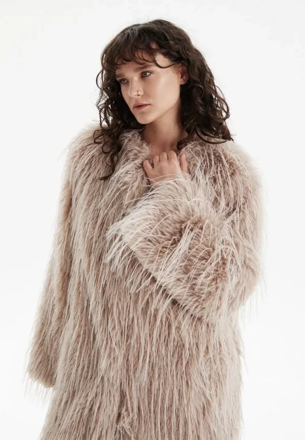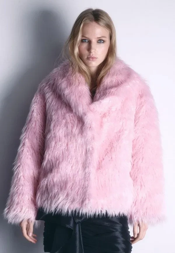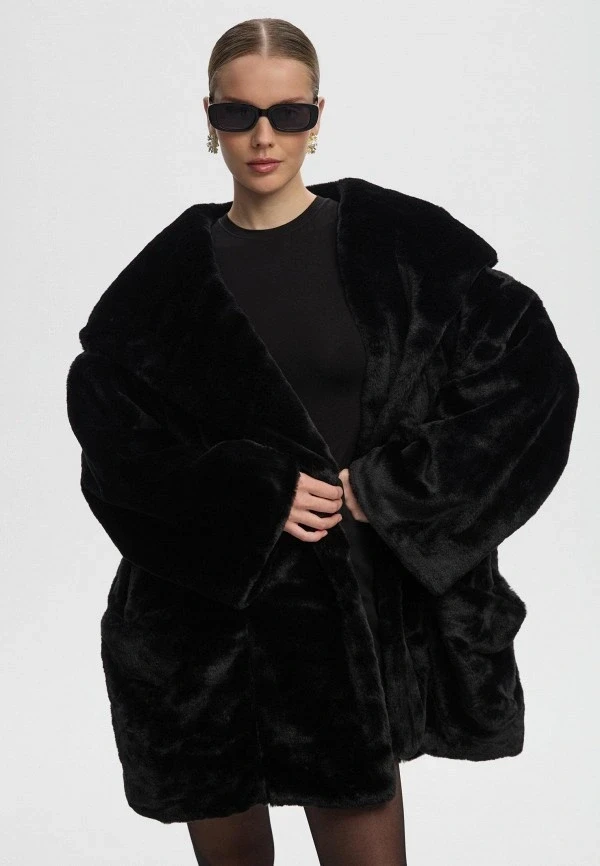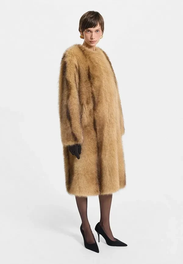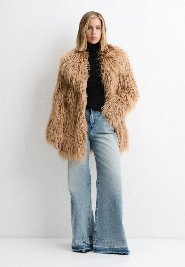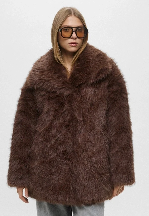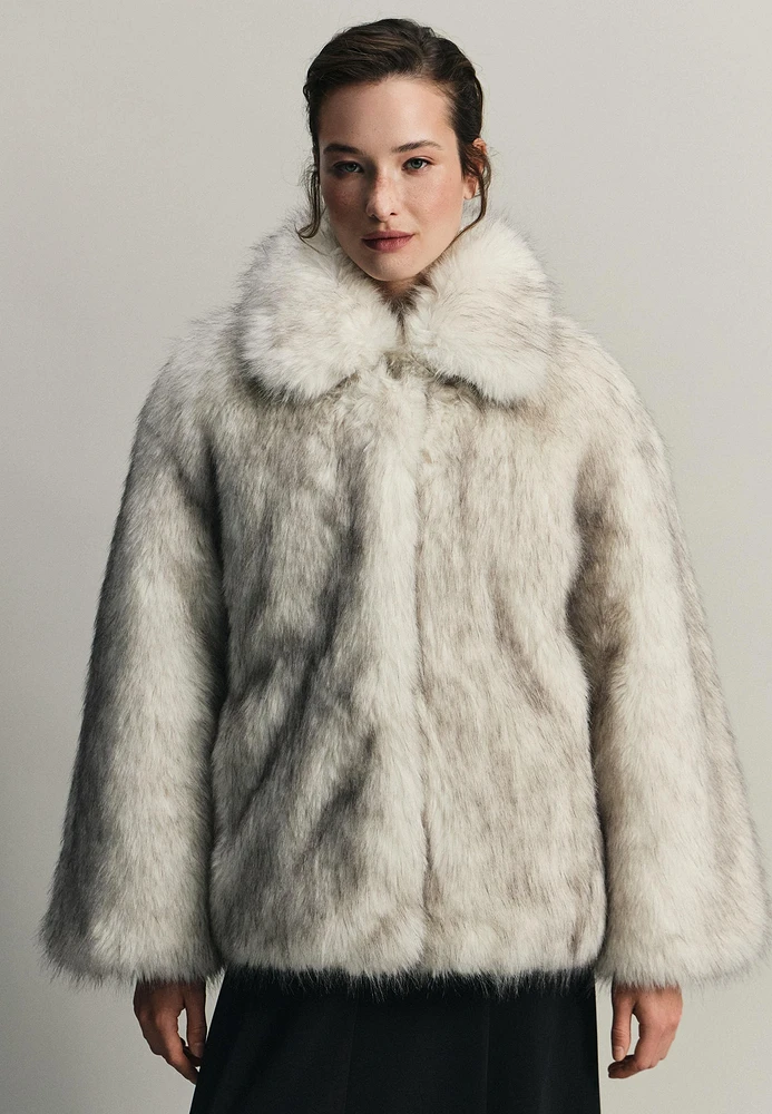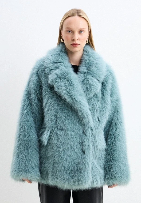 Какие искусственные шубы в моде в 2026 году? Именно такие: объемные, фактурные, с длинным мехом, который создает эффект легкой взъерошенности.