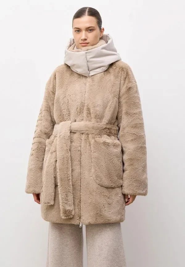 Какие шубы в моде в 2026 году? Именно такие: нейтральные, универсальные, качественные. Беж в этом сезоне представлен во всех возможных вариациях — от холодного серо-бежевого до теплого карамельного. Главное, чтобы мех был плотным, а крой лаконичным. Долой избыточные украшения, декоративные строчки или странные воротники.
