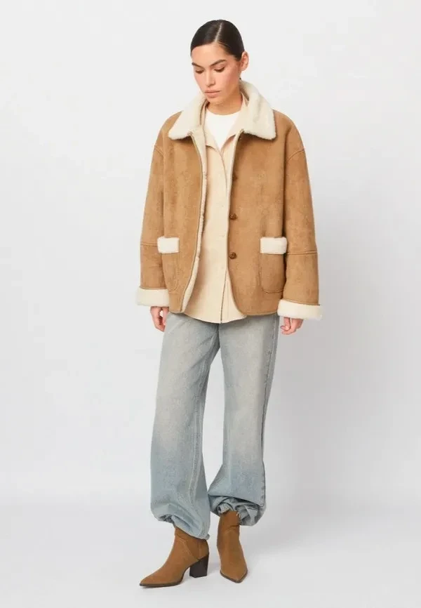 Camel — цвет, который не нуждается в маркетинге. Он сам по себе ассоциируется со спокойствием, статусом и обеспечивает тебе непринужденный стиль, от которого без ума блогеры по всему миру. В 2026 camel-дубленки стали чуть шире по плечам, мягче по форме и богаче по материалам. Они напоминают теплые объятия, но при этом выглядят визуально структурно.