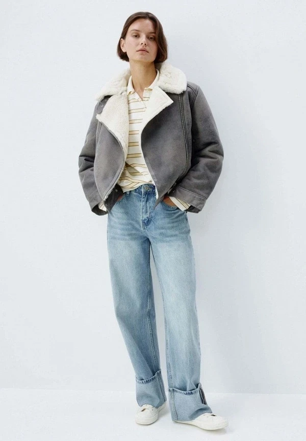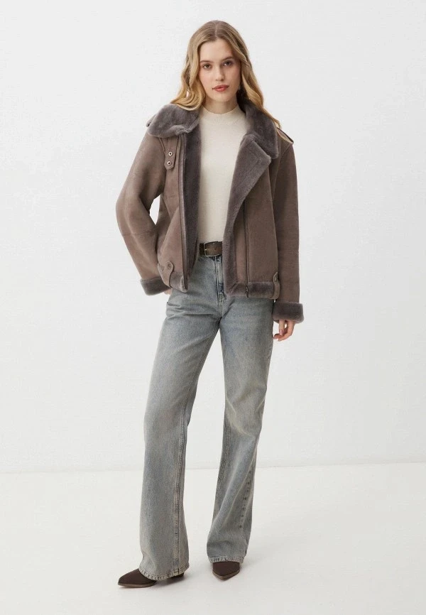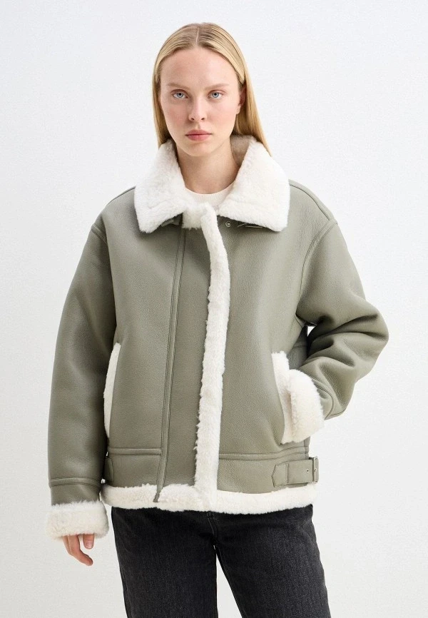 Авиатор — модель, которая уверенно держит позиции уже несколько сезонов, но в 2026 она получила новую жизнь благодаря пастельной палитре. Светло-голубой, мятный, пудрово-розовый — мягкий спектр неожиданно органично смотрится на грубоватой форме дубленки. Это делает вещь визуально легче, нежнее и заметно свежее, чем привычные темные версии.