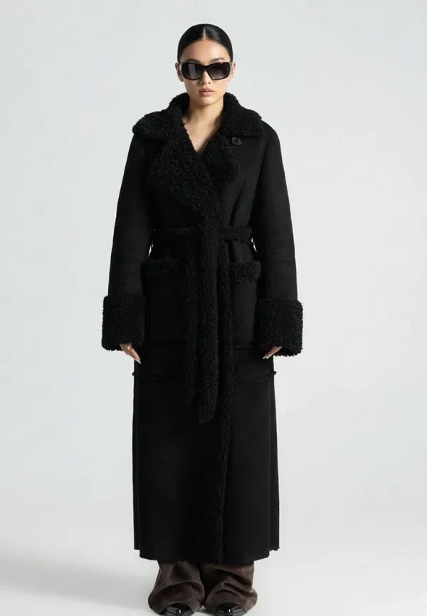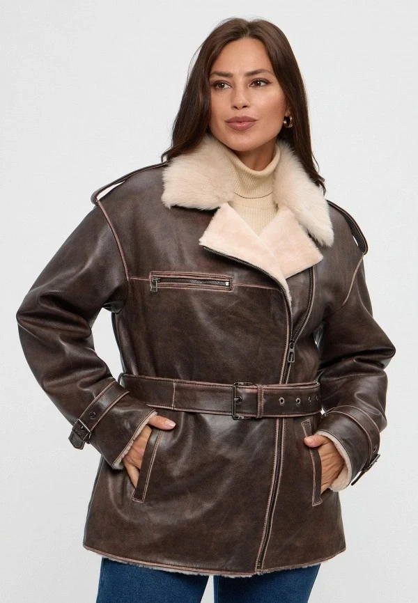 Этот фасон — ответ всем тем, кто скучал по подчеркнутой талии. Приталенная дубленка с широким ремнем создает эффект «силуэта», визуально удлиняет ноги, собирает фигуру, делает ее более утонченной и стройной. Не говоря уже о том, что такие дубленки мода 2026 года полностью поддерживает как горячий тренд.