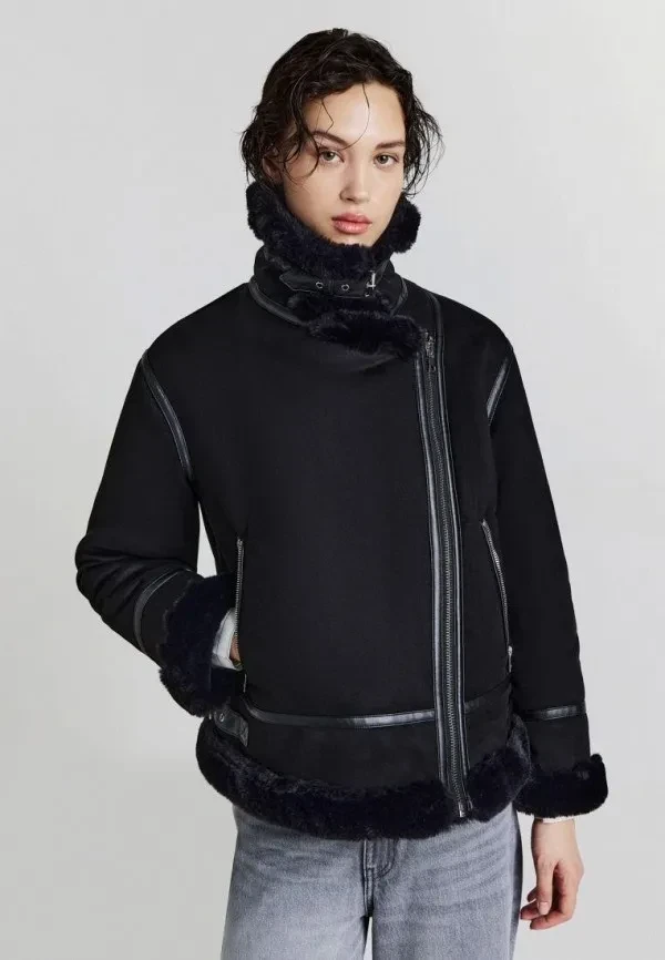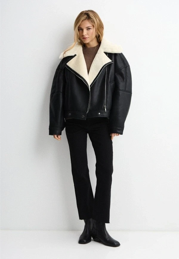 Черные модели особенно хороши за счет фактуры: матовая кожа, мягкая замша, крупная строчка, чуть завышенная линия плеч. Все это создает визуальную энергетику, которая не спорит с остальным гардеробом, а подчеркивает его. И если говорить честно: короткая черная дубленка — самый простой способ попасть в категорию «одеваюсь как инфлюенсер».