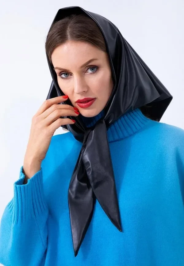 Весной 2026-го это самые стильные аксессуары сезона. Шелковые платки, которые завязываются под подбородком или на затылке, входят почти во все свежие коллекции. Но круче всех, конечно, ты будешь в косынке из экокожи.