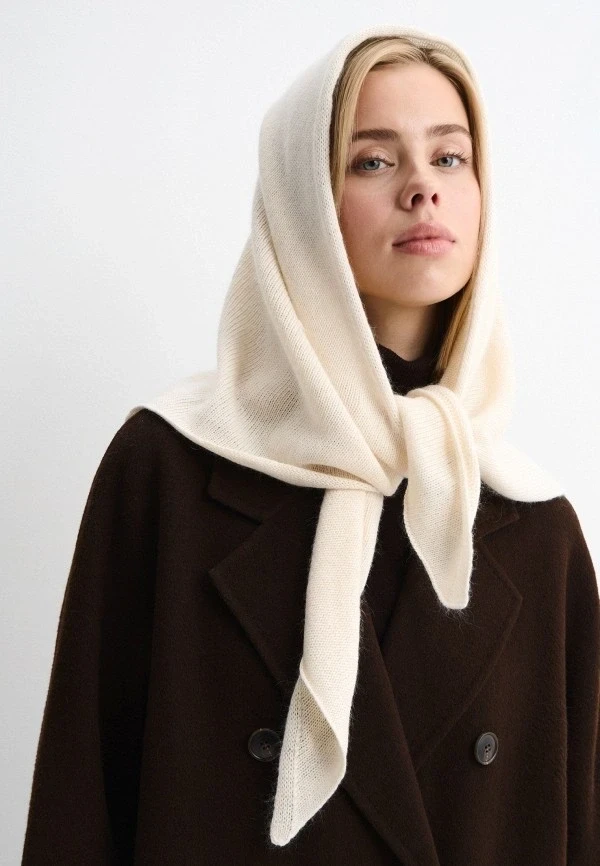 Пуховые платки — не ностальгия, а настоящий зимний тренд. Только не надо их завязывать классическим способом под подбородком (если ты не собираешься катать ватрушки с горки). В 2026-м платок носят свободно, накинув на голову и плечи, как шаль.