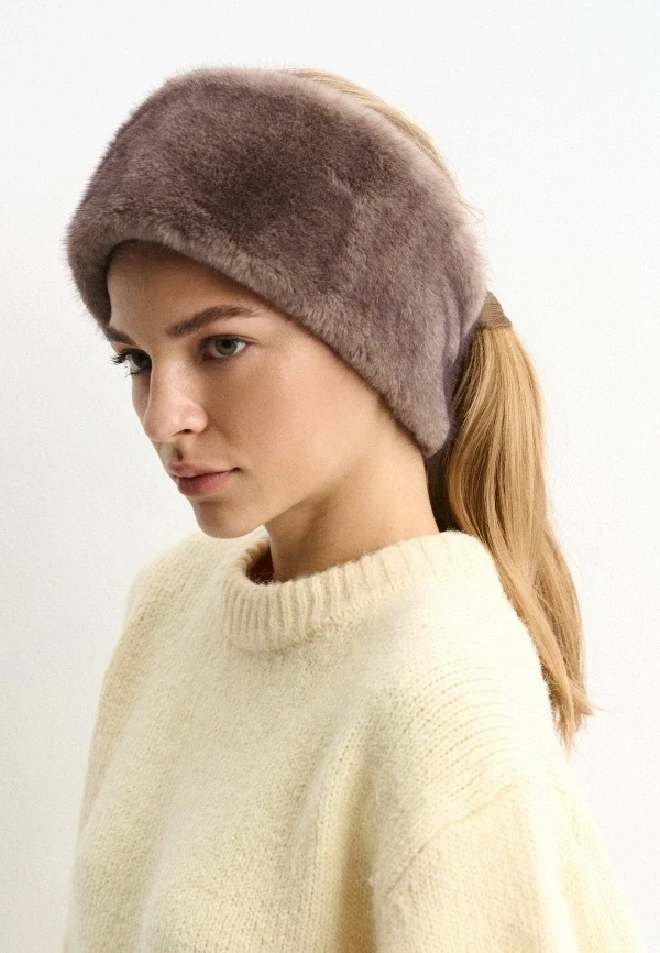 Меховая повязка на голову — более легкий вариант для тех, кто не хочет полноценную шапку. Она закрывает уши, но оставляет макушку открытой (что, согласись, не очень логично, зато красиво). Повязка отлично смотрится с распущенными волосами, высоким хвостом, пучком как минимум на катке.