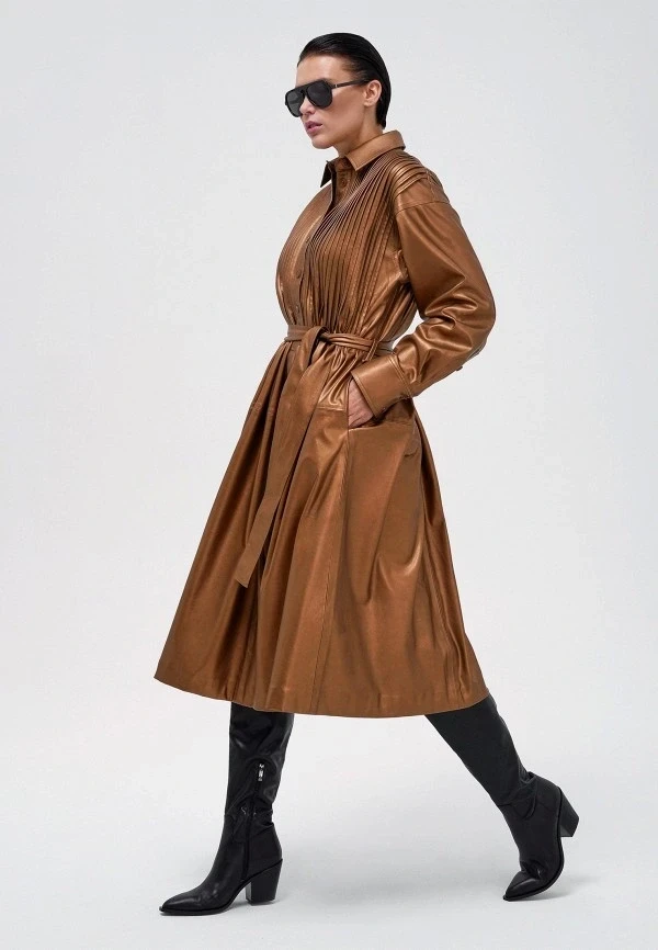 Экокожа выглядит дорого, носится практично и не требует жертв в виде животных. Что может быть лучше? Поэтому трендовые женские платья 2026 года просто не могли обойтись без таких вариантов. Облегающие мини, приталенные миди, свободные платья-рубашки — все эти модели «в коже» моментально добавляют образу агрессивности в хорошем смысле и будто бы приглашают тебя на подиум.