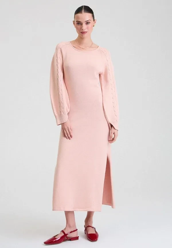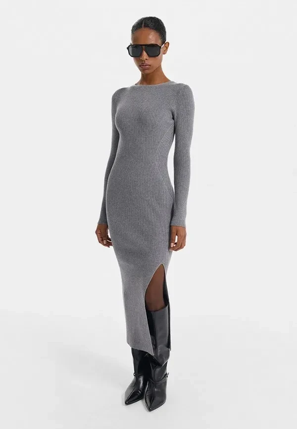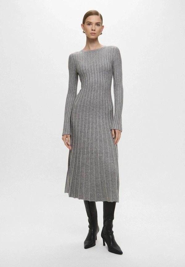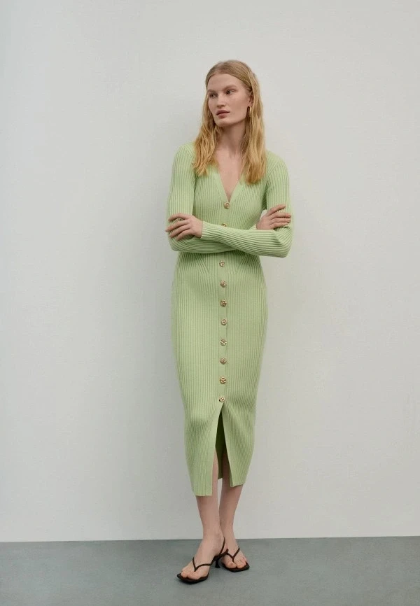 Фасон вязаного платья обычно простой: прямой силуэт, длина миди или макси, иногда с разрезами по бокам или спереди. Но магия в деталях: высокий ворот или, наоборот, глубокий V-образный вырез, длинные рукава или совсем без них, контрастная окантовка. Цвет — от нейтральных бежевых и серых до ярких красных и синих. Это отличные повседневные решения для тех, кто хочет выглядеть «роскошно, но не слишком».