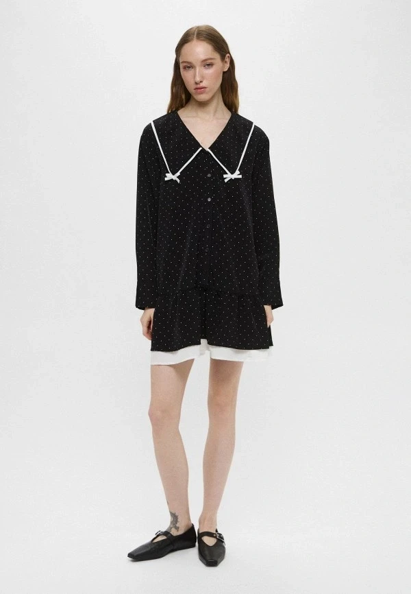 Как носить? С классическими лодочками для делового образа. С грубыми ботинками или ботильонами для кажуального. Аксессуары лучше выбрать минималистичные: часы, тонкие кольца, возможно, небольшая брошь на воротнике. Сумка — строгая, структурированная. Не перегружай лук, пусть воротничок будет главной деталью. И да, если хочешь добавить немного дерзости, надень под платье с воротничком массивные цепи или чокер — контраст строгости и бунтарства сработает на отлично.