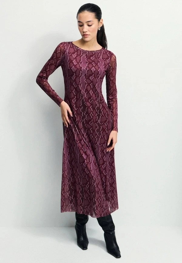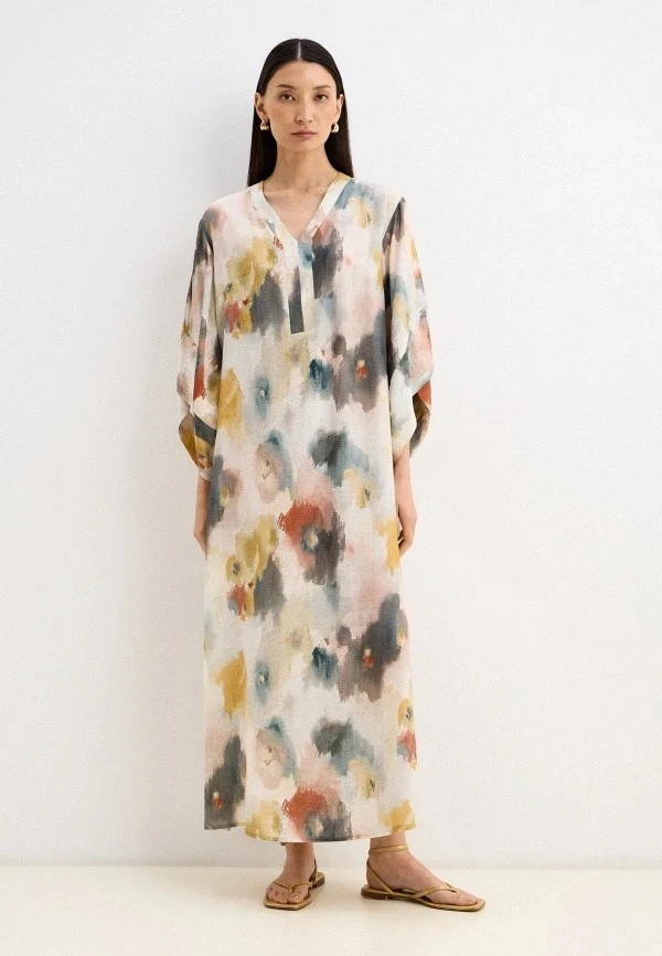 Силуэт платья с принтом может быть любым: от приталенных миди до свободных макси. Главное, чтобы принт работал на твою фигуру, подчеркивая ее уникальность. Напомним, что вертикальные линии вытягивают, горизонтальные расширяют, а крупные элементы привлекают внимание к той зоне, где расположены.