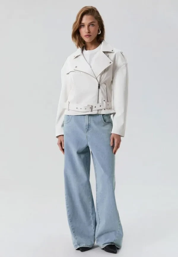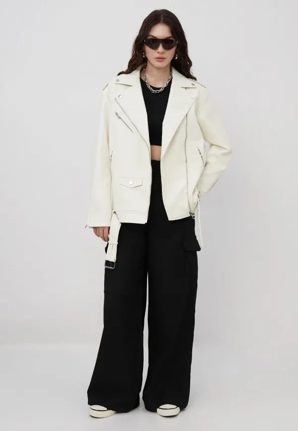 Лайфхак: белая кожаная куртка — не сиюминутный тренд. Но чтобы она дальше оставалась актуальной, выбирай модель оверсайз или хотя бы на размер больше. Во-первых, это тенденция, которая с нами уже много времени. Во-вторых, под нее поместится свитер, когда весенняя погода снова устроит сюрприз.