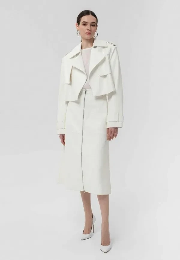 Классические силуэты — укороченные байкерские модели, прямые куртки-рубашки, удлиненные тренчи из кожи — все они теперь в белом цвете. Почему это работает? Белая кожа выглядит одновременно дерзко и элегантно. Ты можешь собрать образ в стиле рок-н-ролл с черными скинни и ботинками, а можешь создать нежный аутфит в пастельных оттенках, если тебе еще не надоел олд мани.