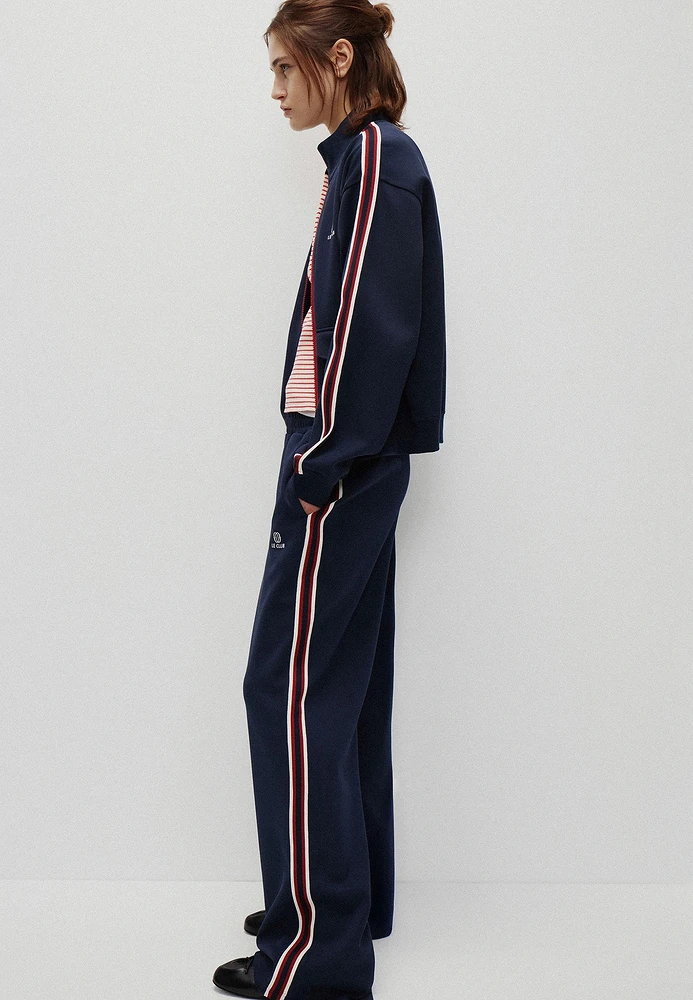 Винтажные отсылки проявляются в деталях: ретро-полоски по бокам, воротники-стойки, укороченные фасоны курток. Это напоминает спортивную форму из 70-х, но в современной, дорогой интерпретации.