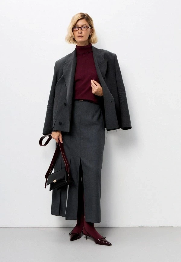 Этот образ идеален для важных событий: собеседования, свидания в хорошем ресторане, культурных мероприятий, презентации. Он транслирует: «Я знаю себе цену и не боюсь это показать». Цвета выбирай либо в одной гамме (тотал-лук в бежевом, черном, сером), либо создавай контраст (черная юбка + белый жакет, изумрудная юбка + кремовое пальто).