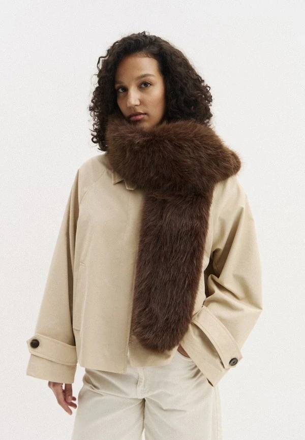 Меховой шарф в 2026-м нам всем совершенно необходим. Натуральный или искусственный — не суть важно (хотя экомех сейчас на пике), главное — достаточный объем. Чем пушистее, тем круче. Мы говорим о боа, палантинах и шарфах-трансформерах, которые можно обмотать вокруг шеи три раза и все равно останется.