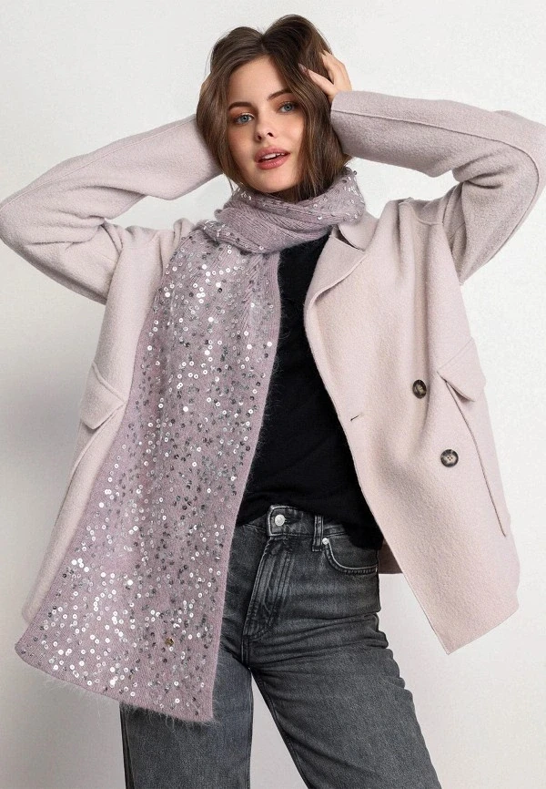 Пайетки на шарфе могут быть разными: от деликатных, мелких, которые просто создают легкое мерцание, до крупных, ярких, которые буквально кричат «я здесь». Цвета — любые: классические золото и серебро, яркие красный и синий, или даже градиенты и голографические эффекты. Главное — следи за тем, чтобы шарф вызывал у тебя желание улыбнуться, когда ты его надеваешь.