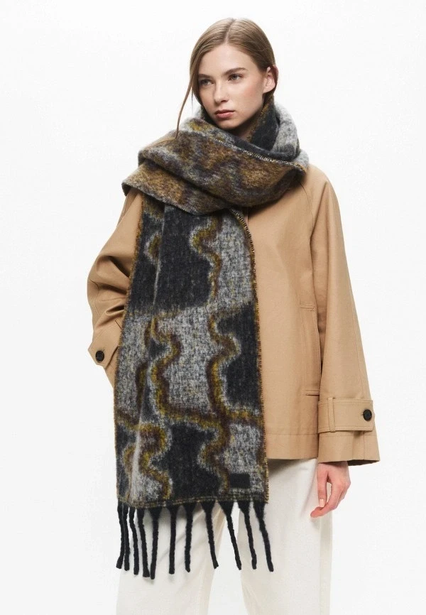 Шарфы с узорами — бесконечная история, которая никогда не выйдет из моды. Но в 2026-м акцент именно на затейливых, сложных принтах. Отложи скучную мелкую клетку, потому что нам нужна крупная, контрастная, в стиле шотландских пледов. Или полоска, но не тонкая морячка, а широкая, асимметричная, в неожиданных цветовых сочетаниях. А еще абстракция, геометрия, этнические мотивы — словом, то, что притягивает взгляд.