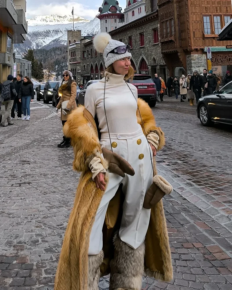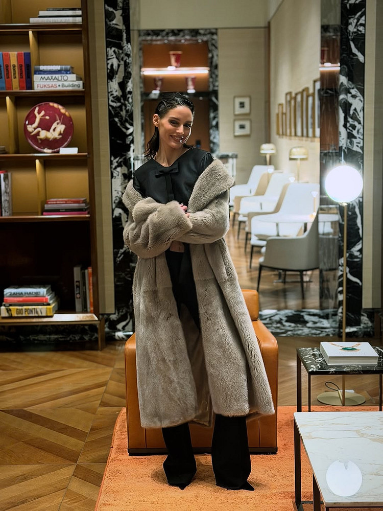 Из аксессуаров нужна структурированная сумка среднего размера (гигантские здесь ни к чему), тонкие золотые украшения, возможно, шляпа с широкими полями, если зима выдалась не слишком снежной. Короткая шуба в этом образе работает хуже — ей не хватает драматизма, который нужен для полноценного «рублевского» эффекта. Вдохновение? Бьянка Джаггер в клубе Studio 54 или любая героиня сериала «Династия».